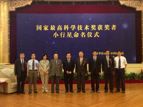 2012年6月4日下午由张亚卓副所长带队院所共40人参加了科技部在北京举办的小行星命名仪式,国家最高科学技术奖获奖者吴征镒、王忠诚、孙家栋、师昌绪、王振义五位在学术上造诣精深、贡献巨大的中国科学家获得小行星命名。
