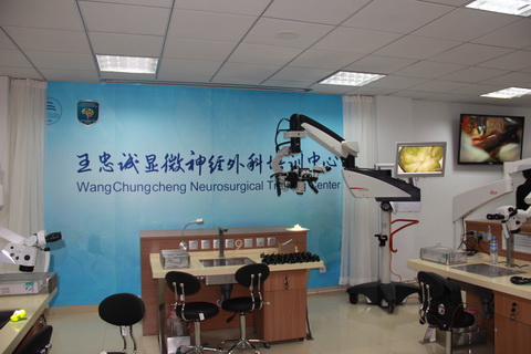 王忠诚显微神经外科培训中心,设有标本准备室、显微解剖实验室、远程会议、手术观摩教室和虚拟手术训练教室等。其中显微解剖实验室配备了25张实验台,每张实验台都设计配备有徕卡显微镜,全套德国蛇牌显微器械和动力系统。