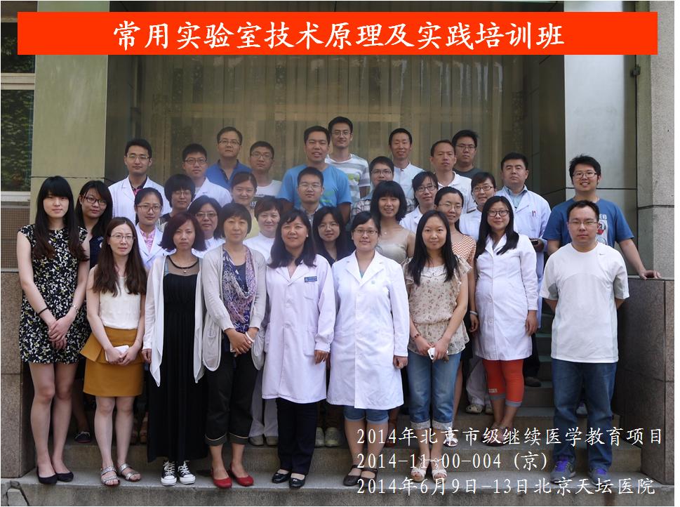 首都医科大学附属北京天坛医院临床医学研究实验室于2014年6月9-13日举办了“常用实验室技术原理及实践培训班”,本次培训班为北京市级继续医学教育项目,项目编号2014-11-00-004 (京)。培训班旨在提高高等医学院校及医院研究生及相关科研人员常规实验技能,使学员掌握基本的分子生物学、细胞生物学理论及实验技术,提高实验操作能力,加深其对科学研究和实验设计的认识,开拓科研思路,提升业务水平。