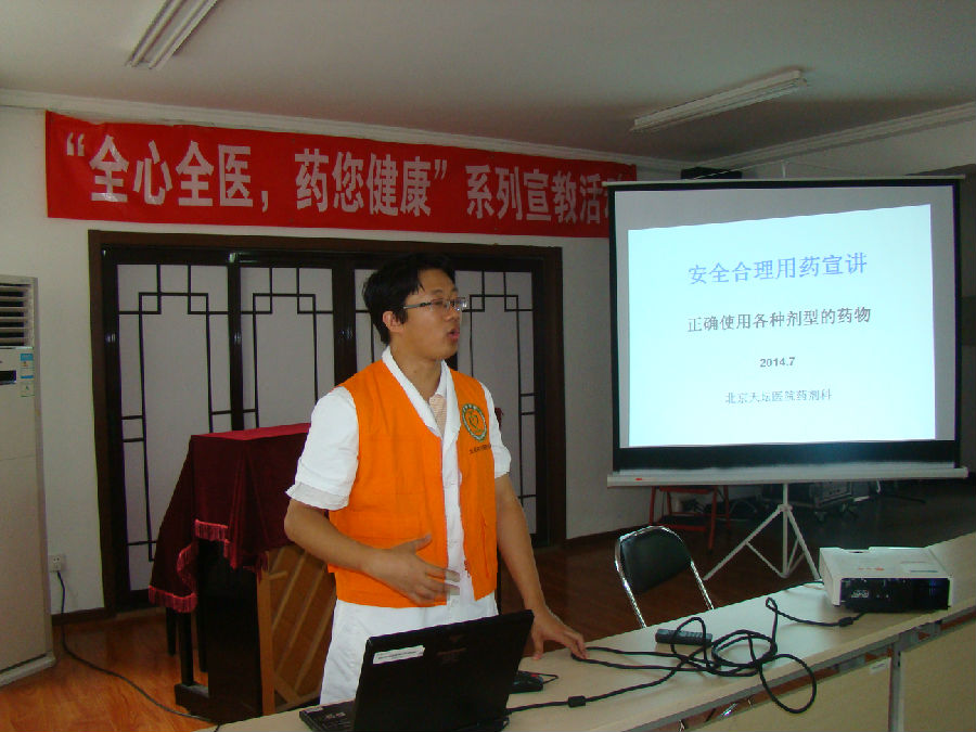 健康宣教,不仅仅是单纯的向大众进行医药知识宣传。同时也是树立医务工作者的正面形象,展现医院社会责任感的优良方式。此次活动,为我支部系列宣教活动第一站。在今后,我们将长期坚持开展此类宣教活动,活动对象主要面向北京市区及远郊区县的各个基层机构,根据不同机构的客观需求,有针对性的选取合作支部,制定宣讲内容,期望能够将此项活动打造成天坛医院青年的优质品牌。(药剂科 刘腾 孙浩)