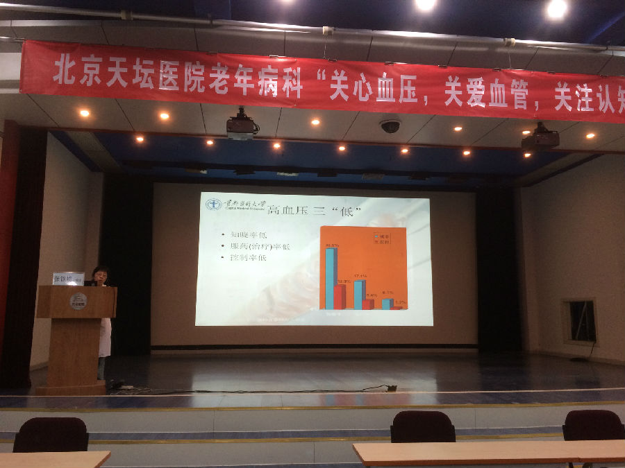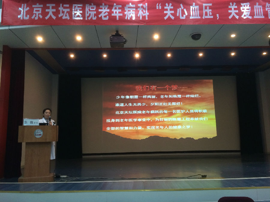 2014年10月8日是第十七个“中国高血压日”,主题是“知晓您的血压”。为提高医务人员对高血压及相关疾病的诊治水平,同时对老年朋友们普及高血压及相关疾病的知识,提高就诊率及治疗率,我院老年病科在科室负责人张巍教授的组织下,举办了为期2天的“关心血压,关爱血管,关注认知”系列健康主题活动。