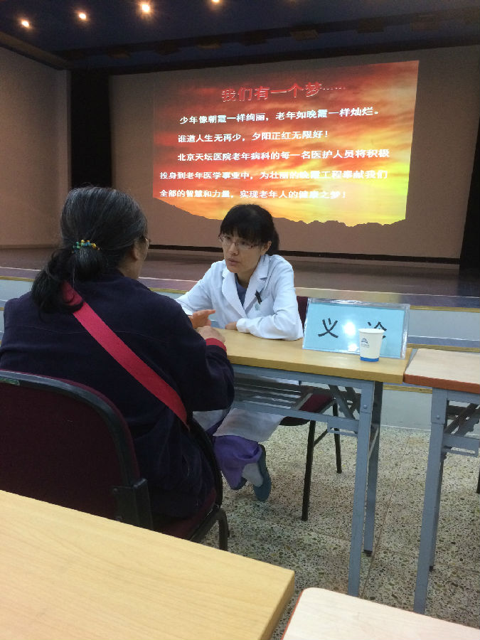 在10月10的健康宣教活动中,首先老年病科的张铁梅副教授真诚提醒老年朋友控制高血压是防治心、脑血管疾病的重要环节,向老年朋友们介绍了高血压患者应具有的健康生活方式,并就如何理想地控制血压对老年朋友们进行了细致的指导。王琰副教授的讲解非常贴近老年朋友,她深入浅出地介绍了脑血管病的危险因素、临床症状、相关的检查手段、诊断标准、有效的预防方法及治疗策略,使老年朋友们全面了解了脑卒中。余舒扬医生认真介绍了认知功能的评价量表,并在现场亲自带领老年朋友对自己的认知功能进行评价,帮助大家完成了健康现状调查问卷。最后,张巍主任向老年朋友们介绍了我院老年病科“忆路同行”病友沙龙,通过定期开展健康宣教活动,老年病科将努力使沙龙成为老年朋友们“知识的讲堂,学习的乐园;沟通的平台,倾诉的渠道;互助的力量,互爱的源泉;病友之家、快乐驿站”!