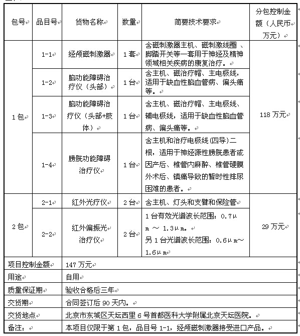 中国仪器进出口(集团)公司受首都医科大学附属北京天坛医院委托,就利用其财政资金的“中医科设备购置项目”进行国内公开招标。现邀请合格投标人就下列货物和服务提交密封投标文件。