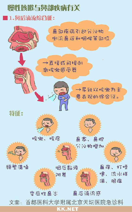提到慢性咳嗽,人们常常会担心肺部或支气管出了问题。其实,有些患者虽然症状表现为咳嗽,病患却可能出在鼻部或咽喉部。看图知晓慢性咳嗽的病因。