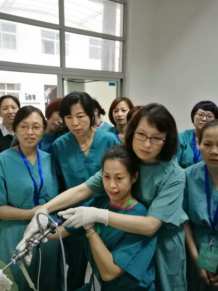 “历时一周的天坛医院手把手内镜学习班结束了,怀着感恩和不舍大家回到各自的工作岗位,在这一周里我们经历了不一样的生活体验,高强度军事化训练,冯力民老师及团队放下所有工作亲自陪着我们,最好诠释了什么叫做手把手!谢谢冯力民老师一周来不离不弃的陪伴,跟女神如此近距离的在一起,同吃、同住、同苦、同乐…衷心感谢!冯老师!”