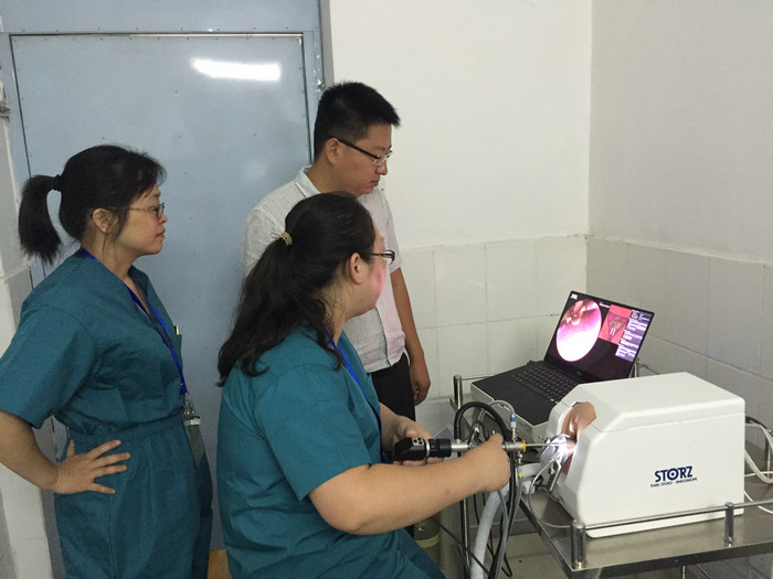 微创手术因其高安全性、低痛苦性和快速康复的优势受到人们的欢迎。本次培训班聚焦于宫腹腔镜的规范诊疗及并发症处理,培训班旨在提高并规范参训学员们的临床操作技能。尽管学习班已经举行了十五届,培训了全国各地学员上千名,但创新是培训班永远的追求。此次学习班冯力民主任首次将欧洲妇科内镜HYSTT标准引进,注重于标准化操作流程的训练和考核,排除考官人为因素来做出判断,此项标准跟全世界医生的考核标准一致。所有学员在模拟器进行电切操作前第一步要进行定位训练,训练的医生在不平整的宫腔形态下去找不同的病灶,然后很稳的把异常病灶取出,这一点是对宫腔镜手术的稳定性是非常重要的,而且对于5ml容量的宫腔不能因为人为的操作造成破坏。第二步的培训是VR虚拟的电切培训,虚拟的电切培训在于培训学员规范操作的能力,镜子进宫颈是不能碰触周围壁、不能碰触宫颈、进入宫腔后对宫腔唯一解剖学的辨识度、对整个宫腔的判断都是评分标准。没经过培训前有70%的学员都是高失分率不及格的,经过5天手把手的培训,高失分度的比率只有5%了,达到了非常好的结果。经过标准化培训后学员们进入真正的手把手电切环节,学员们在宫腔镜模拟器上用猪心做模型来进行手术操作练习,从最初切到穿孔、切到断环的状况,经过5天训练每组学员都能把一个完整的猪心心房心室切成一个完整的宫腔,再没有穿孔和断环情况发生。同时整个培训中贯穿一种理念即如何避免手术操作给病人带来更大的伤害,如致死性并发症、空气栓塞等的发生。