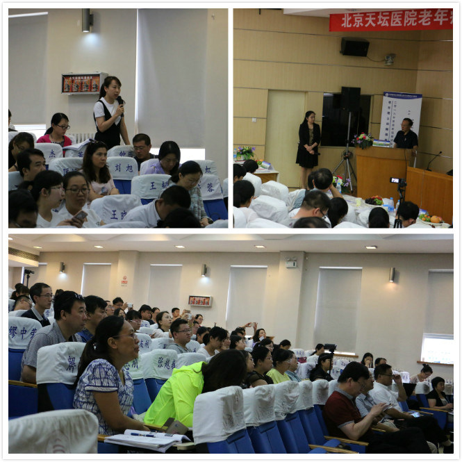 我院老年病科主任张巍教授担任此次大会主席。在开幕式上,张巍主任转达了院领导对本次会议的亲切关怀和大力支持。中华医学会老年医学分会主任委员、卫生部北京医院老年医学研究所所长于普林教授莅临会议并致辞:随着老年医学事业的迅速发展,国家对老年病科医师综合素质的要求越来越高,北京天坛医院老年病科创建学术交流平台、为提高老年病科医生的专业和学术水平付出了积极的努力,给予高度的肯定。首都医科大学老年医学系主任委员、北京宣武医院老年医学部主任陈彪教授回忆了我院老年病科自成立以来举办的继续医学教育项目和会议,对张巍主任带领科室为首都医科大学老年医学系的建设做出的贡献表示赞赏,期望更多的医护人员加入到老年医学工作者的队伍中来。两位领导的殷切期望令我们深深地感到作为老年病科医师的神圣使命和重大责任,他们的肯定让我们倍受鼓舞!我们定将坚持不懈地以实际行动为祖国的老年医学事业的建设和发展做出贡献!