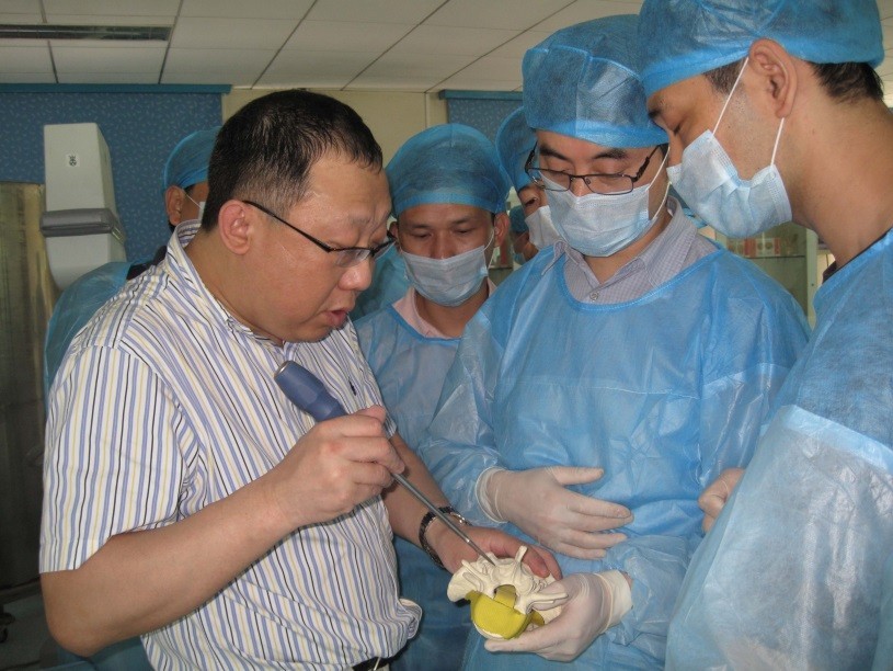 刘宝戈主任进行TLIF手术技巧标本演示,手把手教学