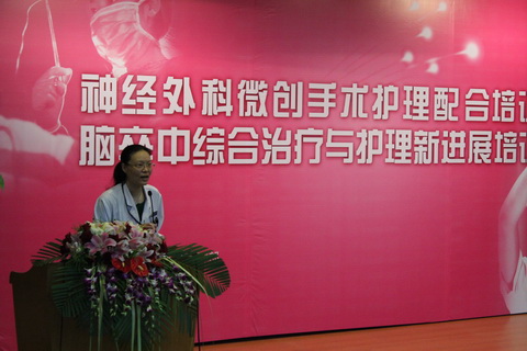 在此次培训班上,我们邀请了基础理论和临床经验都非常丰富的专家授课:神经外科赵继宗教授通过自己的经历详细讲解了微创神经外科与转化医学的发展现状及未来展望;神经内科王春雪主任利用视频及各种生动的病例诠释了从医护视角理解医患沟通、防范医疗风险,护理部王彩云主任作为中华护理学会手术室专业委员会主任委员用她多渠道的超前信息告诉我们如何构建手术室优质管理平台,如何更加安全、规范、高效地管理手术室;手术室护士长也将自己丰富的专业管理经验与培训班的学员进行了交流,同时我们还安排了几位临床工作经验非常丰富的专科组长讲解微创神经外科手术的全程护理,仪器设备的管理要求及使用维护。在会议期间,插播了“手术室护士”风采的短片,吸引众多学员的眼球。在脑卒中培训班上,应邀授课的专家来自神经内科、急诊、ICU等多个相关学科,她们的精彩讲述令学员们印象深刻。我院自2010 年整合了神经内外科、神经介入、影像科、重症监护、神经康复、急诊医学等多个优势学科的临床诊疗资源,建立了天坛脑血管病中心,在脑血管病的综合防治进行了全新的医疗探索,使我国脑血管疾病防治向国际先进水平迈出坚实的一步。神经内科张玉梅主任从细节出发,着重讲解了脑血管病患者失语症的训练方法,急诊科科护士长从急救的角度讲解了卒中患者的生存链,对于急性脑血管病的急救配合,诠释了时间就是生命的含义;综合ICU科护士长作为一名护理管理者,从质量管理出发,在脑血管病重症患者的护理管理方面与学员分享了自己的管理经验。临床护士的工作渗透于脑血管病综合治疗的各个环节,她们在脑血管病患者的神经功能监测、颅内压监测、脑血流代谢监测以及并发症预防等方面,总结出了自己的经验与心得,在此次会议上也与大家进行了分享。
