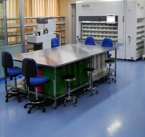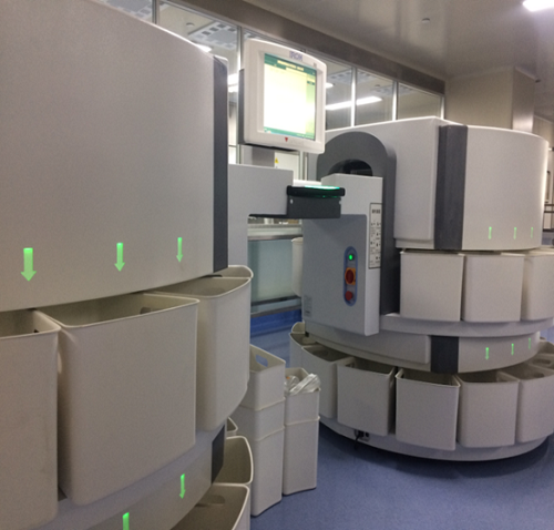 天坛PIVAS承接住院病区患者输液类长期医嘱和细胞毒药物及全静脉营养液临时医嘱的调配工作。中心目前拥有生物安全柜6台,水平层流台8台,此外配备有药品统排机、新一代智能分拣机、全自动盘点机、自动贴签机、剥盖机、气道物流、轨道小车等配液运输自动化设备,以及静脉用药管理系统、二维码PDA扫描系统,实现药品配置全程的信息化、智能化、自动化管理。