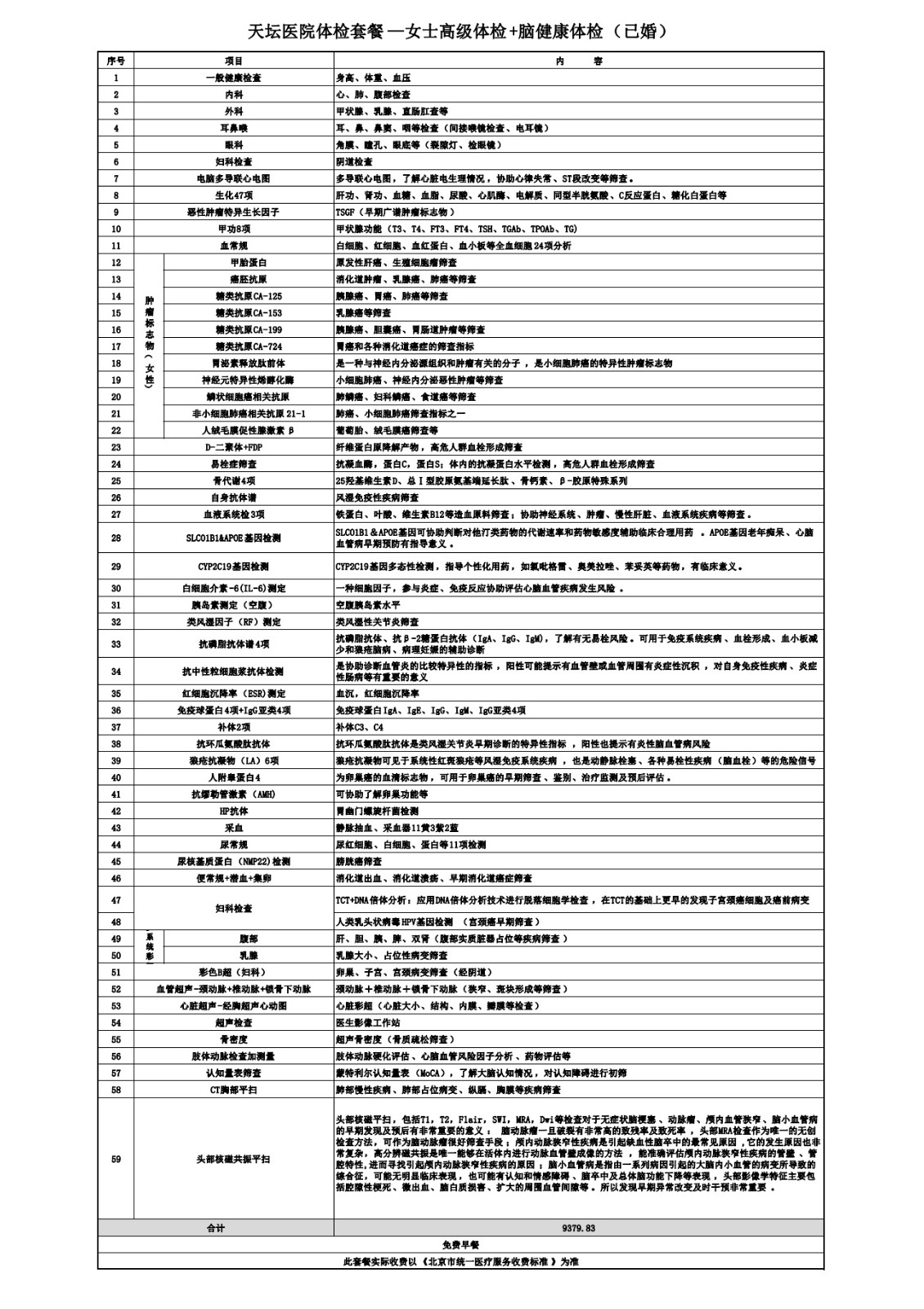 天坛医院体检套餐—女士高级体检 +脑健康体检( 已婚)