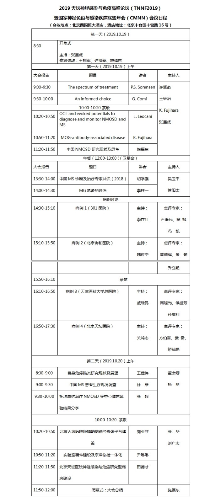 2019天坛神经感染与免疫高峰论坛(TNNF2019)