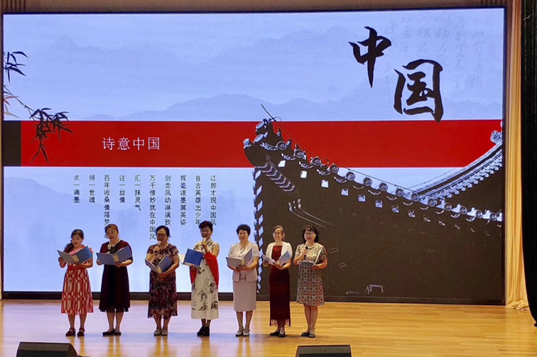 阳光朗诵班的诗歌朗诵《可爱的中国》,拉开了庆祝中华人民共和国成立70周年文艺演出的序幕。退休党员张小平编排并领舞的《再唱山歌给党听》热情洋溢,台下的党员们随着音乐一起哼唱,退休职工解希恩领衔的民乐演奏更是把喜庆的氛围引向高潮。