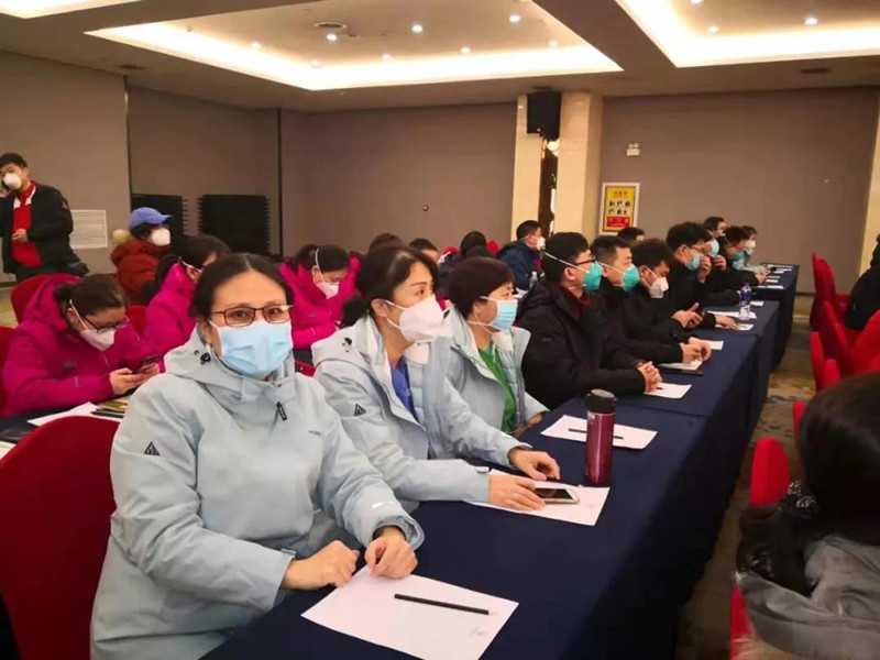 当日上午,稍事调整后,由来自北京地坛医院的专家对医疗队全员进行新型冠状病毒肺炎诊疗方案和个人防护等方面的培训。