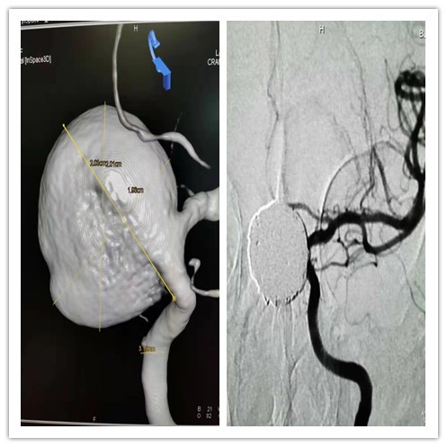 患者动脉瘤巨大,且生长于眼动脉,给手术操作带来极大难度。“动脉瘤附近的血管有些扭曲,对于手术操作来说有些麻烦;血管壁非常薄,术中操作填塞弹簧圈的时候可能会导致破裂出血。”此外,由于介入手术后大概需要3-5天甚至更长时间才能显现出效果,在此期间动脉瘤仍有破裂的风险。