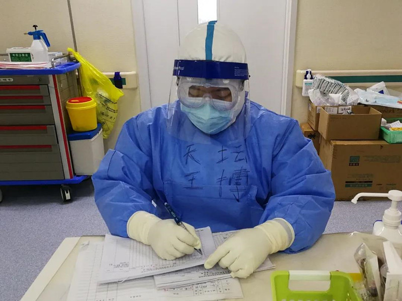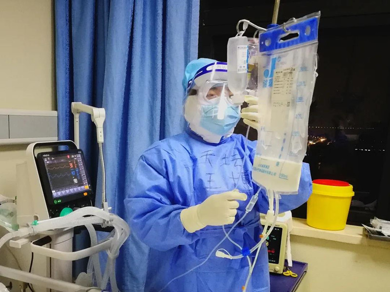 没有时间坐下来,紧接着需要检查各个仪器运转是否正常、管路连接是否完好,最后帮患者擦拭了身体,保持患者皮肤清洁干燥是我们护理的要求。自己又是一身汗,我觉得防护服里面的衣服已经贴在了身上。