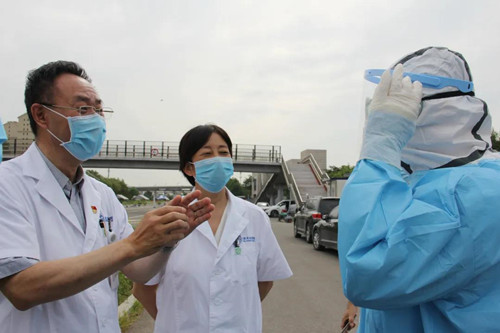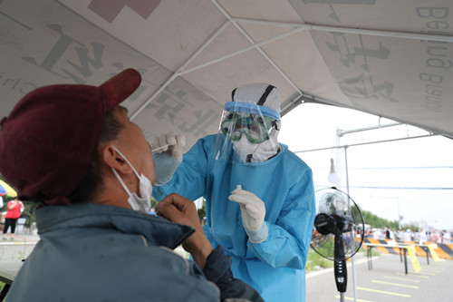 6月17日上午,室外温度34摄氏度。来自北京天坛医院的50名医护人员要完成 7000人次的咽拭子采样任务。