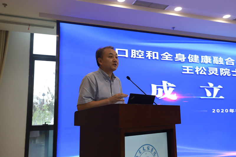 中国科学院士、首都医科大学副校长王松灵在致辞中让大家一起来思考与实验室有关的三个问题,即为什么要成立该实验室?该实验室聚焦什么研究工作?该实验室的目标和使命是什么?并对上述三个问题交流了自己的看法。首先,古人言“病从口入”,为什么这么讲,道理在哪里?目前已有研究表明心脑血管、呼吸系统等全身疾病与口腔疾病有明确相关性,其发生机制及有效防控都有待深入研究,可以说口腔健康是全身健康的基石。此外,不少与口腔及全身健康相关的研究成果没有及时有效转化到临床应用。第二,期望本实验室成立后,针对中枢神经系、呼吸系统等全身疾病与口腔疾病的相关性及机制、牙髓干细胞新药、硝酸盐机体保护作用的临床转化应用进行系统深入的研究。第三,本实验室的目标建设有特色、高水平、多学科交叉的开放实验室;开展口腔与全身健康研究领域系统性创新性研究工作和搭建好科技创新成果转化平台为实验室使命。