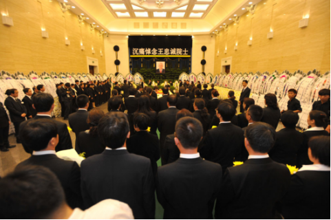 10月10日上午6时50分,王忠诚院士的灵车缓缓驶入北京八宝山殡仪馆,北京天坛医院、北京市神经外科研究所等数百人早早地来到告别厅前夹道迎灵。大家神情肃穆,手持菊花,寄托了对王忠诚院士无限的哀思和不舍。