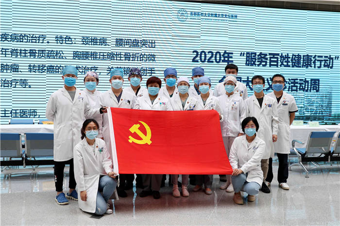 外科党总支参加义诊的科室包括乳腺外科、普外科、骨科、血管外科、泌尿外科、胸外科、眼科及医疗美容科。党总支书记王丕琳及闫文貌、汪岩、杨柳、亢卫波、续梅莹、杨皛皛、赵梦等支部委员都参加了本次义诊活动。参与义诊的医护人员为前来问询的群众做出了细致、耐心的解答,并为百姓提供了测血压、导医、发放科普资料等服务。