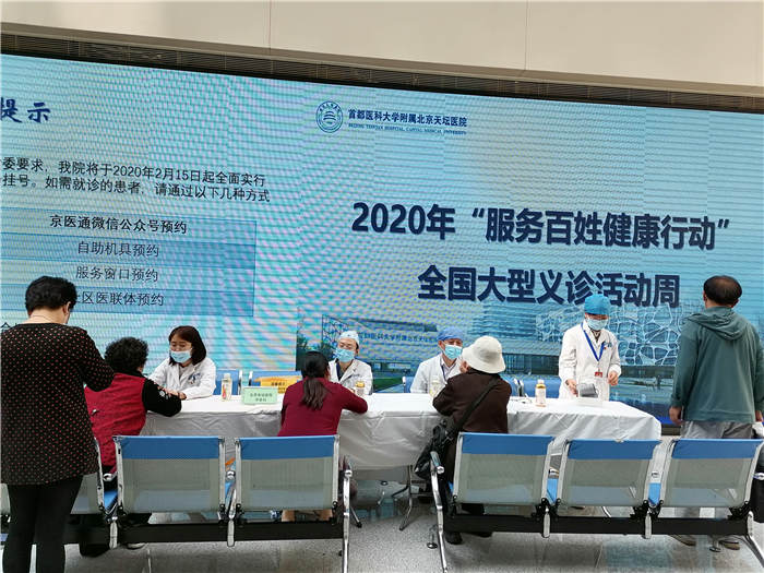 在“服务百姓健康行动” 全国大型义诊活动周活动期间, 9月24日-27日,北京天坛医院门诊部组织各科室在门诊一部举行义诊活动。