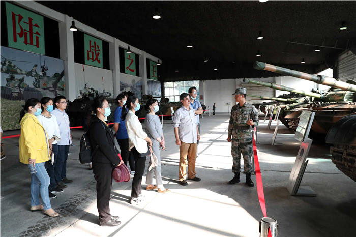随后,党员同志们乘车前往陆军装甲兵学院,进行国防教育活动,大家来到装甲装备陈列馆,这里展示着我军5大类43种不同型号的装甲装备。在学院官兵的讲解下,大家了解到各历史时期的国产主战坦克、轮式、履带式装甲输送车,抢修车、架桥车等装备的具体情况,深刻体会了我军装甲兵部队由弱到强、由单一走向多元的发展历程。