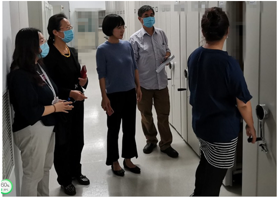 9月24日、30日,党委办公室主任兼院办公室张琳、行政第一党支部书记兼院办公室副主任刘旭、院办公室副主任朱丽丽与院办公室安全员樊啸、安帅芸和负责会议管理工作的赵博琛等一同检查医院档案库房和忠诚楼会议室,开展国庆、中秋节前安全检查工作,确认安全情况下张贴封条。
