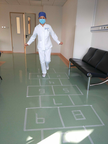 “跳房子”是孩提时期非常受孩子们喜爱,集跳跃、灵巧、平衡为一体的课余活动。大家奇思妙想地创造场地,有的用粉笔画“房子”有的用废纸粘“房子”,有的则在为疫情画出的一米等候线进行简单加工,以双腿跳、单腿跳两种姿势在一米线之间周转、跳跃,在锻炼身体的同时增加许多乐趣,体验孩提时的快乐时光。