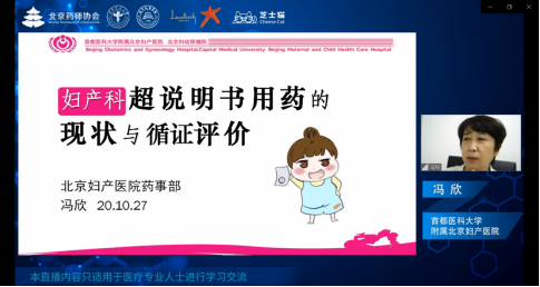 2020年10月27日,北京药师协会药品使用专业委员会、首都医科大学药学院临床药学系、首都医科大学附属北京天坛医院药学部、北京市丰台区药学质量控制与改进中心联合主办的 “中美专科药师网络及现场培训——妊娠期与哺乳期的药物治疗与抑郁管理”成功举办。