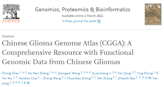 江涛教授团队《GPB》在线发表中国脑胶质瘤基因组图谱 (CGGA) 数据库