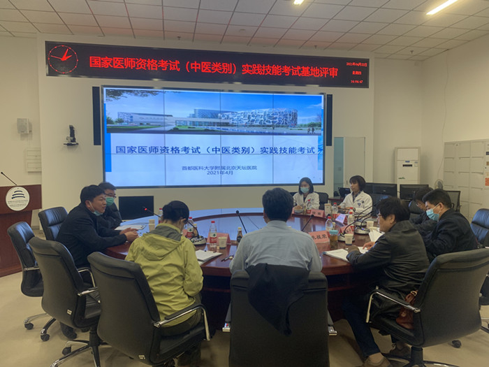 根据北京市中医管理局《关于委托开展中医类别执业医师资格考试考务组织管理工作的函》要求,为做好2021年度北京考区中医类别医师资格考试。通过前期沟通和实地考察工作,4月22日下午,北京市卫生健康委人才交流服务中心(以下简称“中心”)和北京中医协会(以下简称“协会”)对拟增设北京天坛医院为国家中医类别实践技能考试基地进行北京市市级评审工作。评审工作由协会和中心共同组织,中心副主任林绍海、中心考评科科长王杰全程督导,协会秘书长朱桂荣、中国中医科学院望京医院副院长赵勇、中国中医科学院广安门医院魏军平、北京中医药大学东方医院胡慧、北协会杨燕伟担任评审专家。