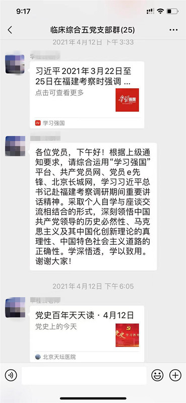 “每日一课” 自4月9日起开展以来,支部所属党员已在临床综合五党支部全体党员微信群内相继发布了10余课,学习、讨论氛围浓厚,反响热烈。