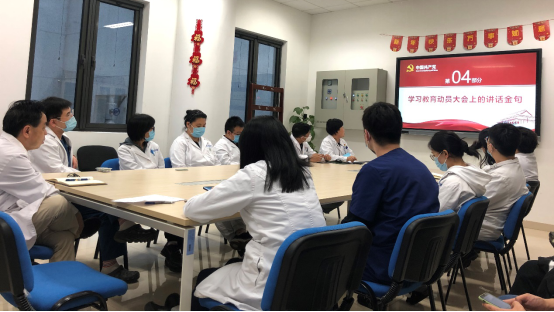 2021年是中国共产党成立100周年,根据北京天坛医院党委关于党史学习教育工作方案,4月19日,药学部党支部召开党史学习教育工作部署大会。会议由党支部书记朱乐亭主持,广大党员和团员青年共同参与,共同学习领悟习近平总书记在党史学习教育动员大会上的重要讲话精神,并对全科开展党史学习教育工作进行部署。