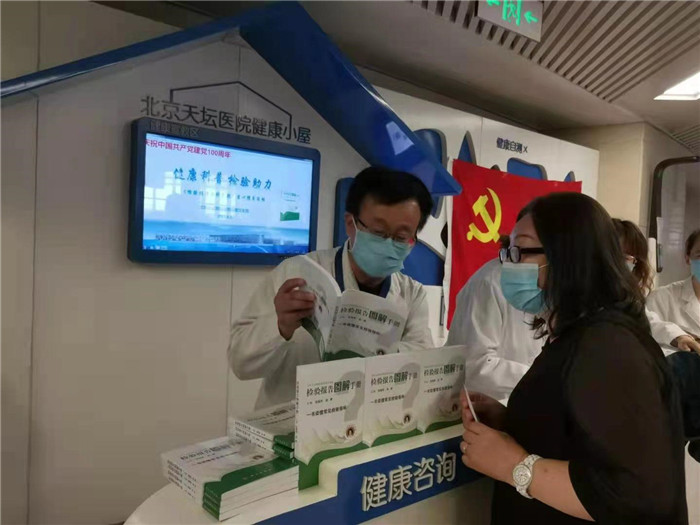 此次活动共发放科普书籍100余份,活动现场人群络绎不绝,持续了近1个小时,为就诊患者普及了医学检验知识,提高了患者的健康意识。为民服务无止境,党员奉献不停歇。检验病理党支部将继续结合本支部的岗位特色、专业特长,开展丰富多彩的送健康服务,更好的为患者服务,向建党100周年献礼!