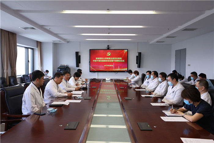 2021年6月8日上午,首都医科大学附属北京天坛医院举行中层干部任前集体谈话暨干部聘任仪式,党委书记管仲军,党委副书记、院长王拥军,党委副书记、纪委书记肖淑萍,部分领导班子成员及新任中层干部参加仪式。肖淑萍副书记主持会议。