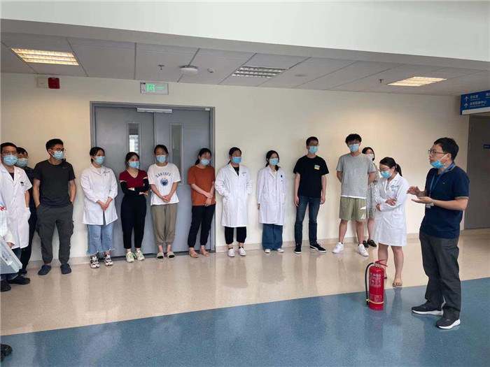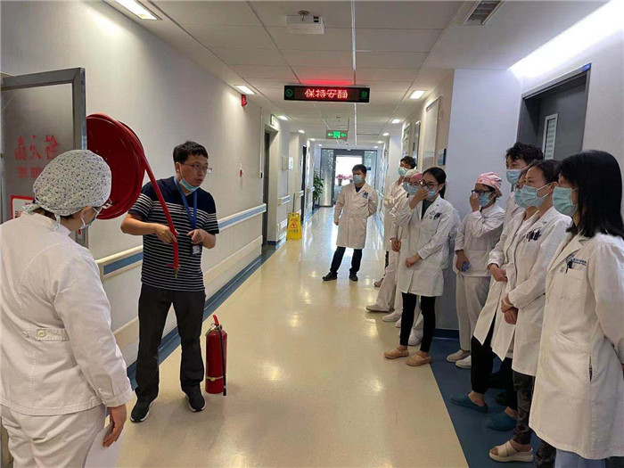 消防管理人员深入国家神经系统疾病临床研究中心、住院一部六层肿瘤内科病房等临床科室、外包服务公司开展灭火器“灭真火”、消火栓“出真水”、消防基本技能实操实训,并联合电工班利用现场消防环境、消防设施设备组织医务人员开展灭火处置、疏散逃生演练。