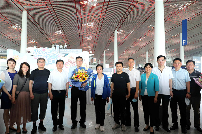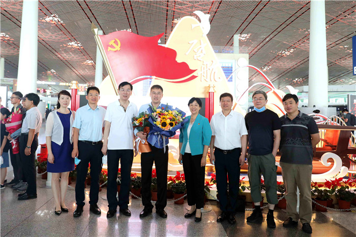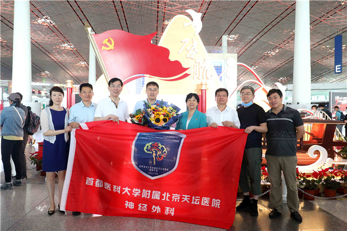 7月25日清晨,北京天坛医院神经外科于洮作为北京市属医院第七批“组团式”援藏干部,启程奔赴拉萨执行为期一年的援藏任务。院党委副书记、纪委书记肖淑萍,人力资源处、工会及神经外科相关负责人等到机场送行。