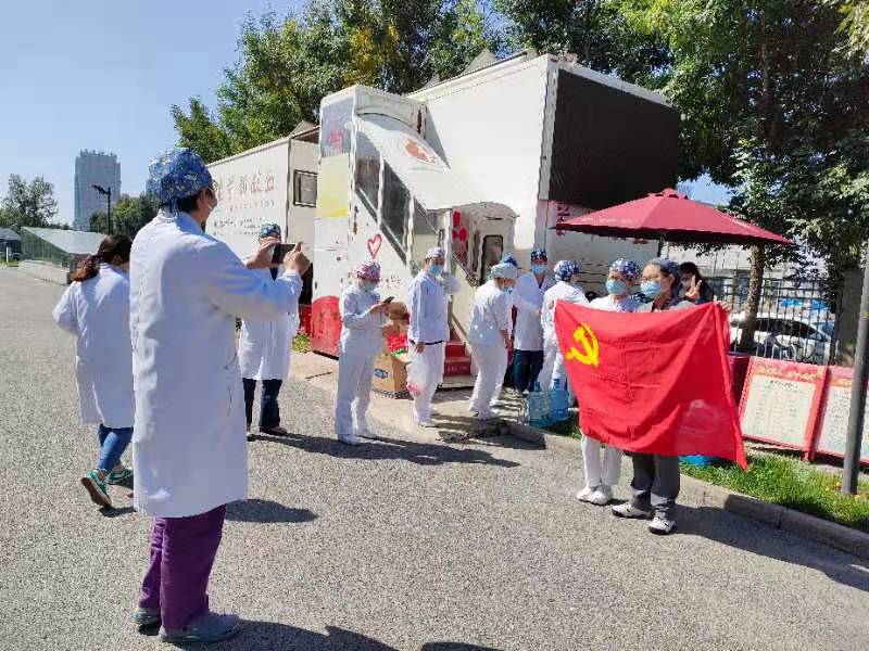 连日来,位于北京天坛医院A区西南角的献血方舱门前,身穿白衣的医务工作者们排队等候献血已经成为一道特殊的风景。医院发出义务献血的号召后,各科室、各支部的工作群里,都是踊跃报名的消息,其中有党团员,也有群众,既有多次义务献血的“老人”,亦有初次献血的“新人”。