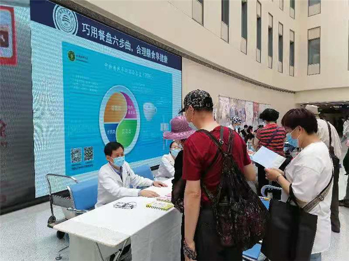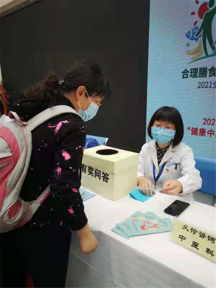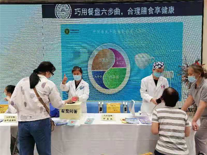 5月20日在门诊一部大厅组织义诊咨询活动,参与科室包括全科医学科、中医科和临床营养科的多名医生,义诊同时组织健康知识有奖问答,患者踊跃参与。