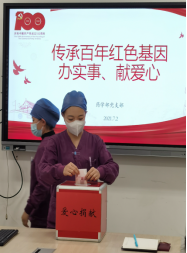 2021年7月2日,北京天坛医院药学部党支部开展了以“传承百年红色基因——办实事、献爱心”为主题的捐款活动。药学部全体党员和群众积极响应号召,踊跃捐款,献出自己的一份爱心,以实际行动践行共产党员的使命和担当。