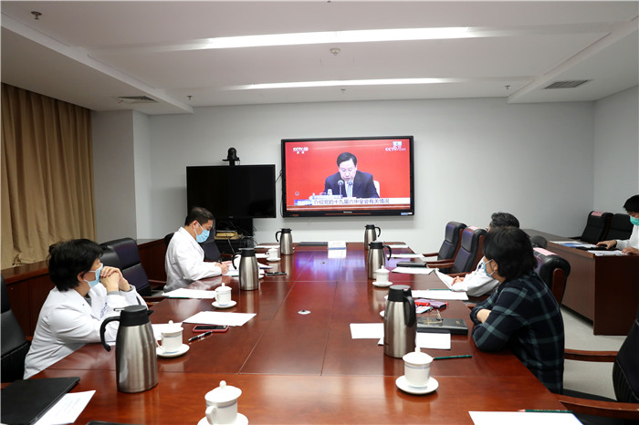 11月12日上午,中共中央举行新闻发布会介绍党的十九届六中全会精神,北京天坛医院党委书记管仲军主持召开北京天坛医院党委理论学习中心组集中学习会,集中收看新闻发布会直播。