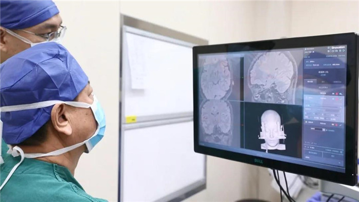 丘脑底核分为感觉运动亚区、联络亚区和边缘亚区,手术需要通过精准定位,将电极植入到感觉运动亚区上,操作稍有不慎,可能引起颅内出血。为了保证手术过程定位精准,专家们多次会诊,最终确定采取传统框架定位与机器人定位相结合的方式,在局部麻醉的状态下,为杰吉放置可充电脑起搏器。