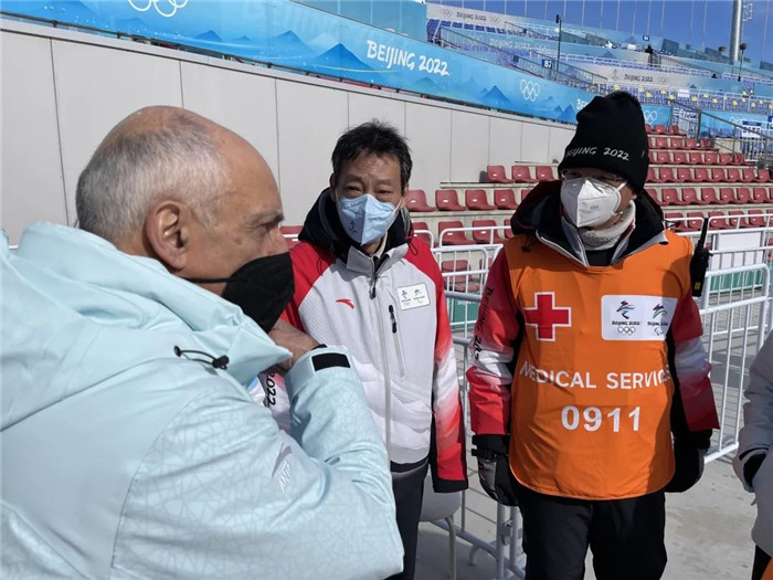 图|北京冬奥会首席医疗官、北京天坛医院常务副院长周建新与国际奥委会专家检查场馆保障工作