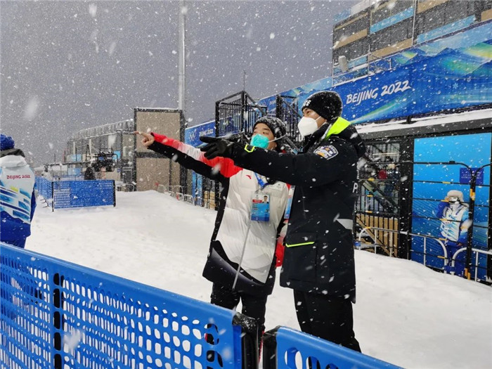 冬季项目和其他运动项目有些不一样,很多训练和比赛从下午要一直持续到晚上。在体感零下三四十摄氏度的冰天雪地里,不管穿多厚的衣服,很快就会被冻“透”了,但只要没有突发情况,我们就要站在保障点位上,不能随便移动。艰苦的环境、紧张的工作、重大的责任,都是对我们的锻炼和考验,而近距离感受国际高水平运动员们拼搏的精神、坚强的意志、向上的能量,是对我莫大的鼓舞!