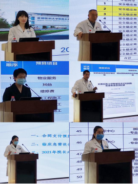 首先吴蕾汇报了2022年度预算批复情况、一季度医院经济运行及预算执行情况,并对上级主管部门新出台的预算管理有关政策和规范进行了解读。