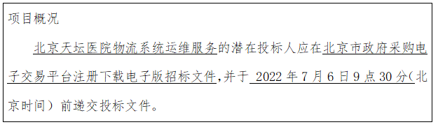 北京天坛医院物流系统运维服务-招标公告