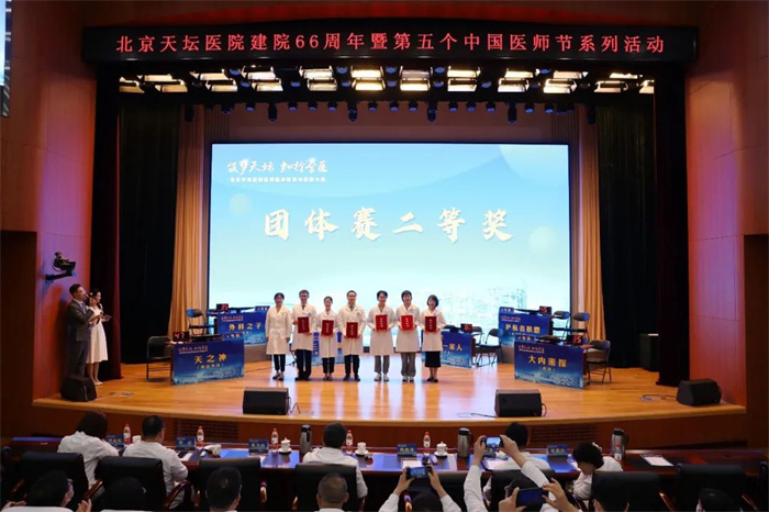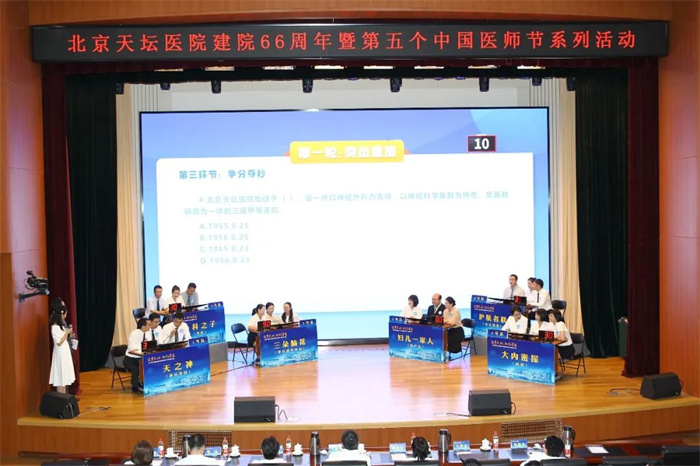 为迎接第5个“中国医师节”和北京天坛医院建院66周年,进一步夯实医务人员的专业知识、提高医疗质量、营造全院勇攀知识高峰的良好氛围,北京天坛医院工会、医务处联合举办的“北京天坛医院建院66周年暨第5个‘中国医师节'列活动——医师临床知识与技能操作竞赛总决赛”8月17日开赛,18名医师组成的6个参赛队和60名医师组成的4个方阵分别参加团体赛和个人赛的角逐。