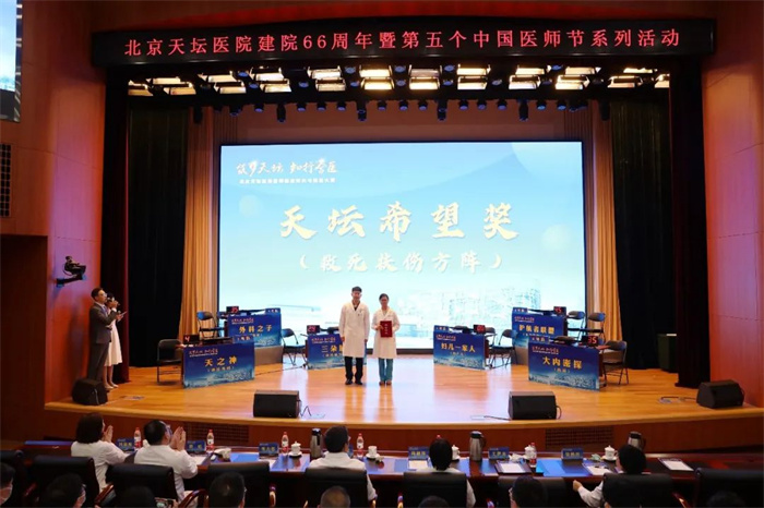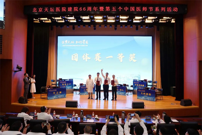 经过激烈的角逐,“天之神”(神经外科)队获得团体一等奖,“护航者联盟”(急诊麻醉ICU)队和“大内密探”(内科)队获得团体二等奖,“外科之子”(外科)队、“妇儿一家人”(妇产儿)队和“三朵脑花”(神经病学中心)队获得团体三等奖;肿瘤内科丁小胜、消化内科于新颖和疼痛科赵春美获得“天坛先锋”一等奖,“救死扶伤”方阵获得“天坛希望”奖。