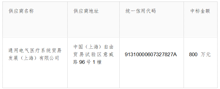 中标成交供应商名称:通用电气医疗系统贸易发展(上海)有限公司