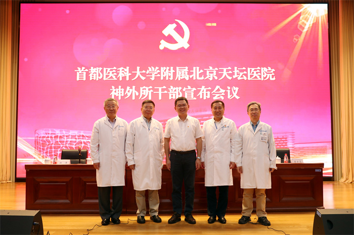 会议由首都医科大学附属北京天坛医院党委书记管仲军主持,市卫生健康委干部人事处处长冯华威宣布关于任命江涛为北京市神经外科研究所所长的决定。